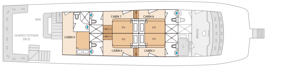 • Single Supplement: 50% surcharge with a maximum of 2 single cabins per departure. Any additional single cabin